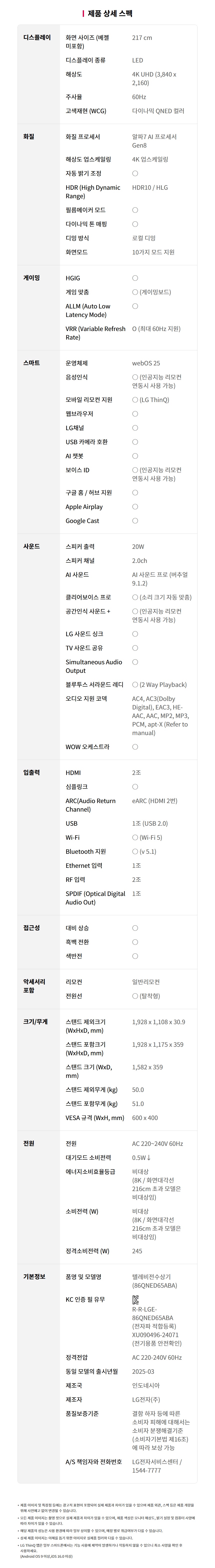 모델명86QNED65ABA