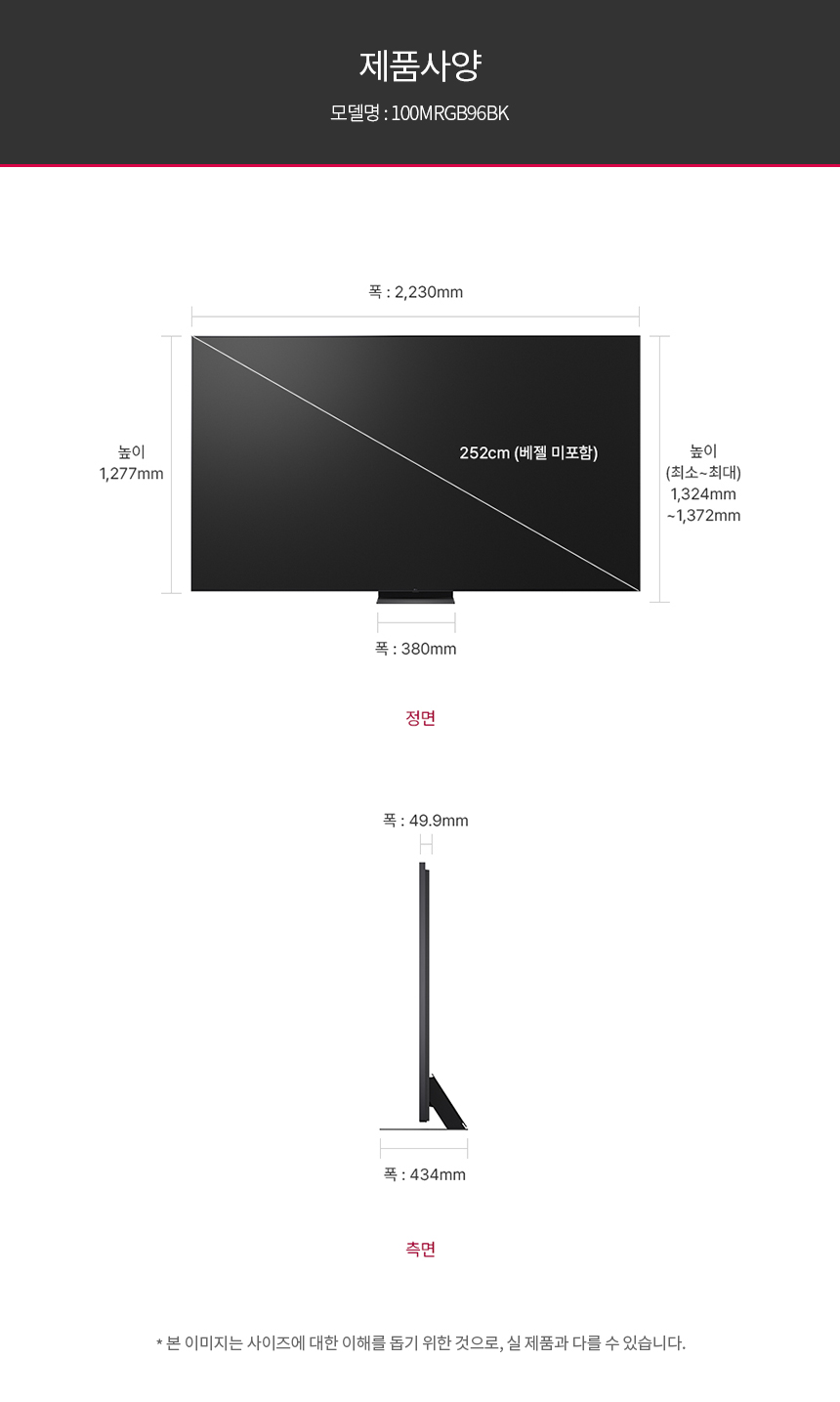 제품크기2,230 x 1,277 x 49.9mm(스탠드제외)