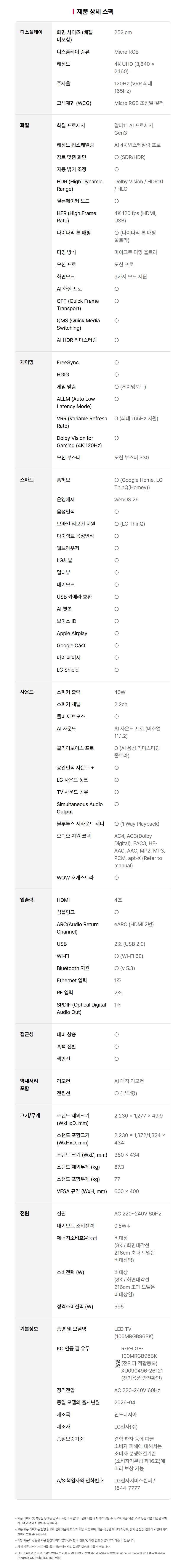 LG Micro RGB evo 100인치 AI TV